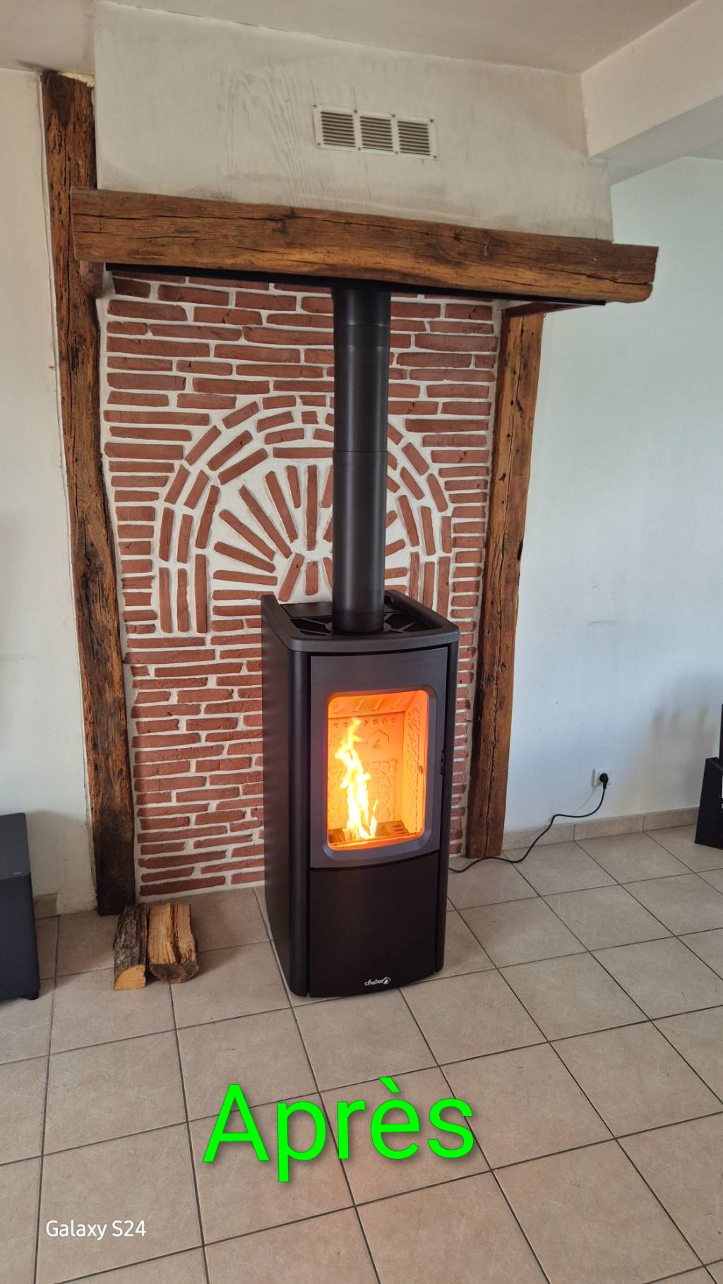 Alors ils m'ont contacté pour remplacer ce poêle à bois par un poêle à granulés... Après avoir écouté leurs motivations je leur ai fait part de mes arguments sur les avantages d'une solution MIXTE = poêle bois et granulés !!!