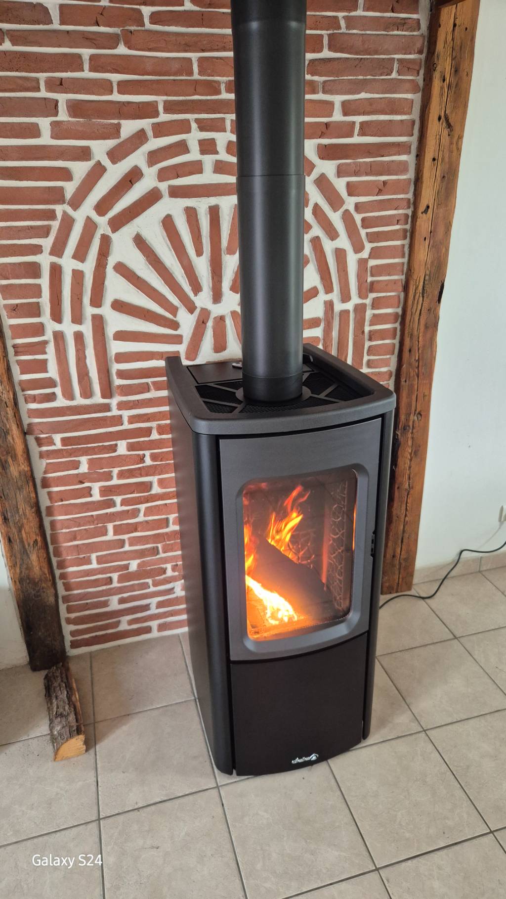 Solution de poêle plus onéreuse qu'un simple poêle à granulés mais l'avantage du poêle mixte c'est qui l'est possible de réutiliser le tubage bois Ø150 (lorsque celui ci est en bon état = inspection de ce tubage que j'ai réalisé à l'aide de ma caméra). Le constat nous a permis de le réutiliser.