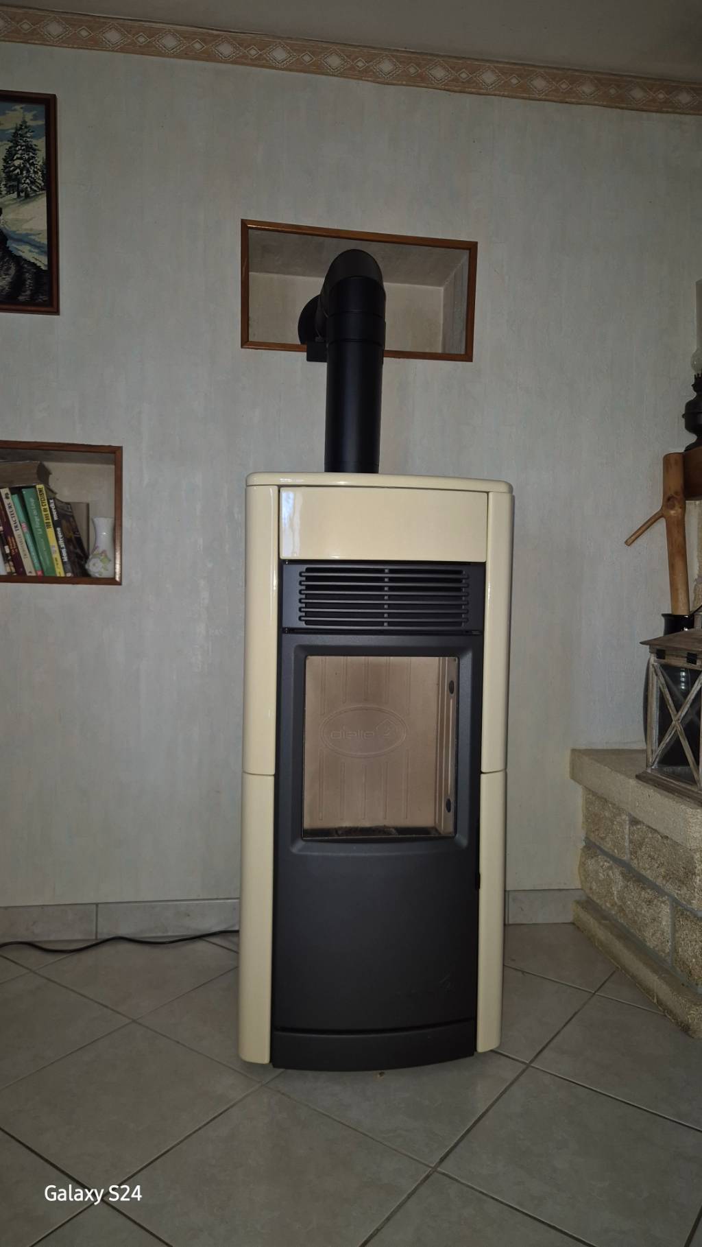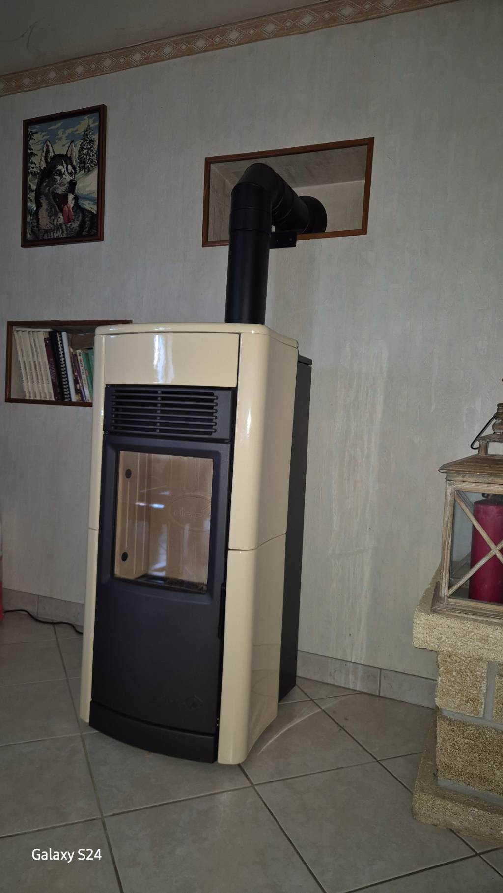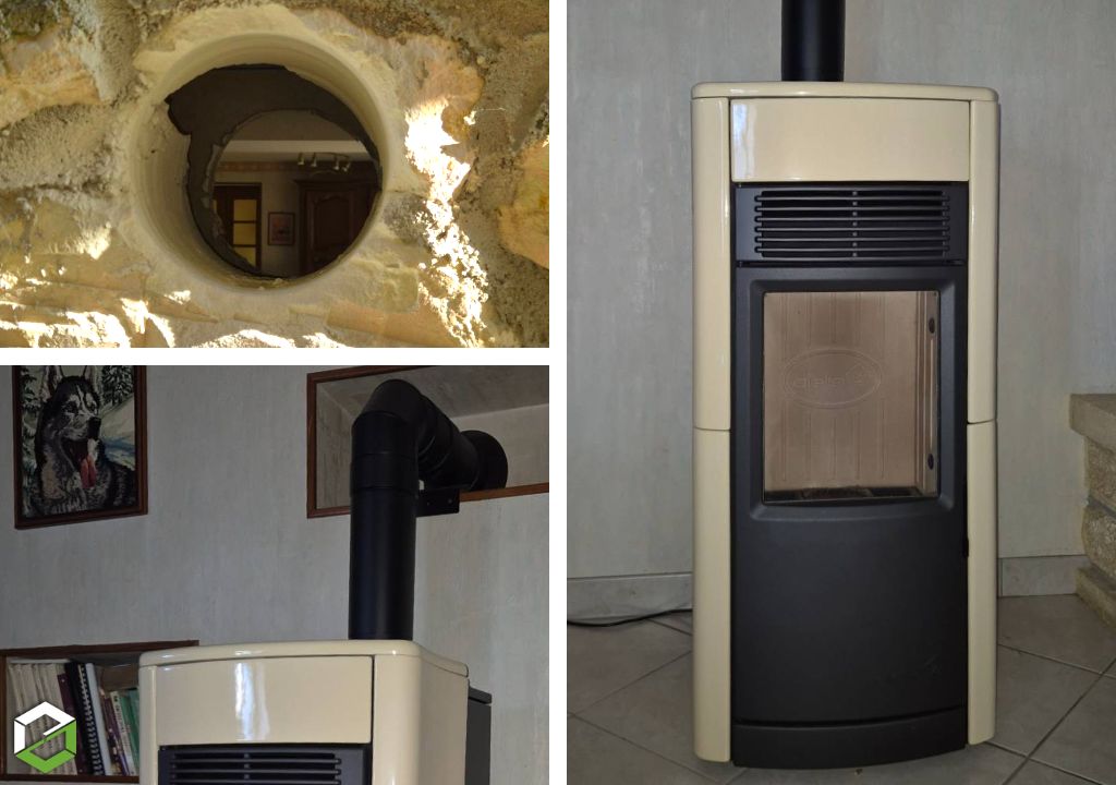 Installation poêle à granulés à ventouse en remplacement d'une cheminée insert